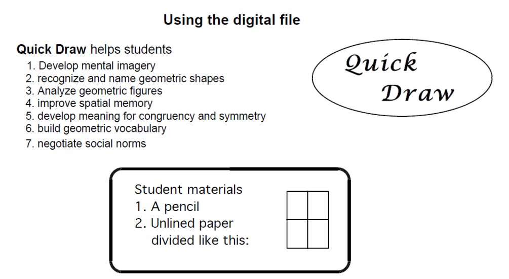 Teacher Comments: “I start each math lesson with Quick Draw. Now the students won’t let me skip it.”